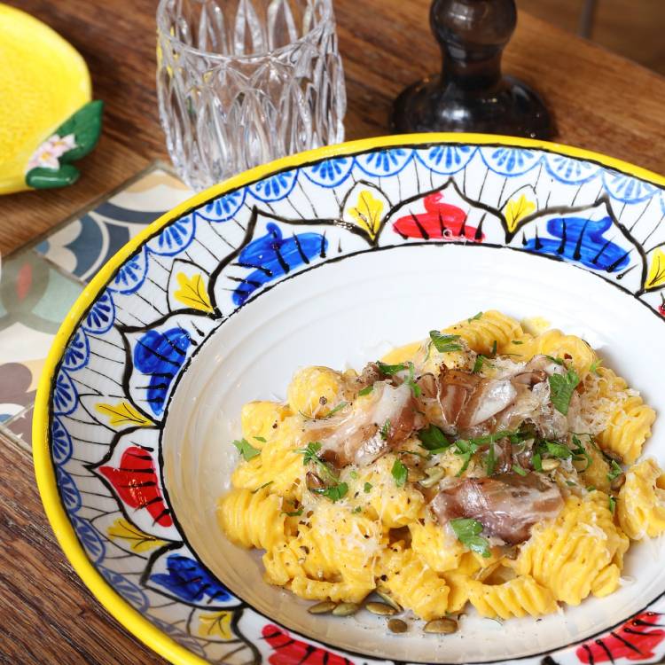Jeunes d'oeufs, pecorino, parmesan et guanciale