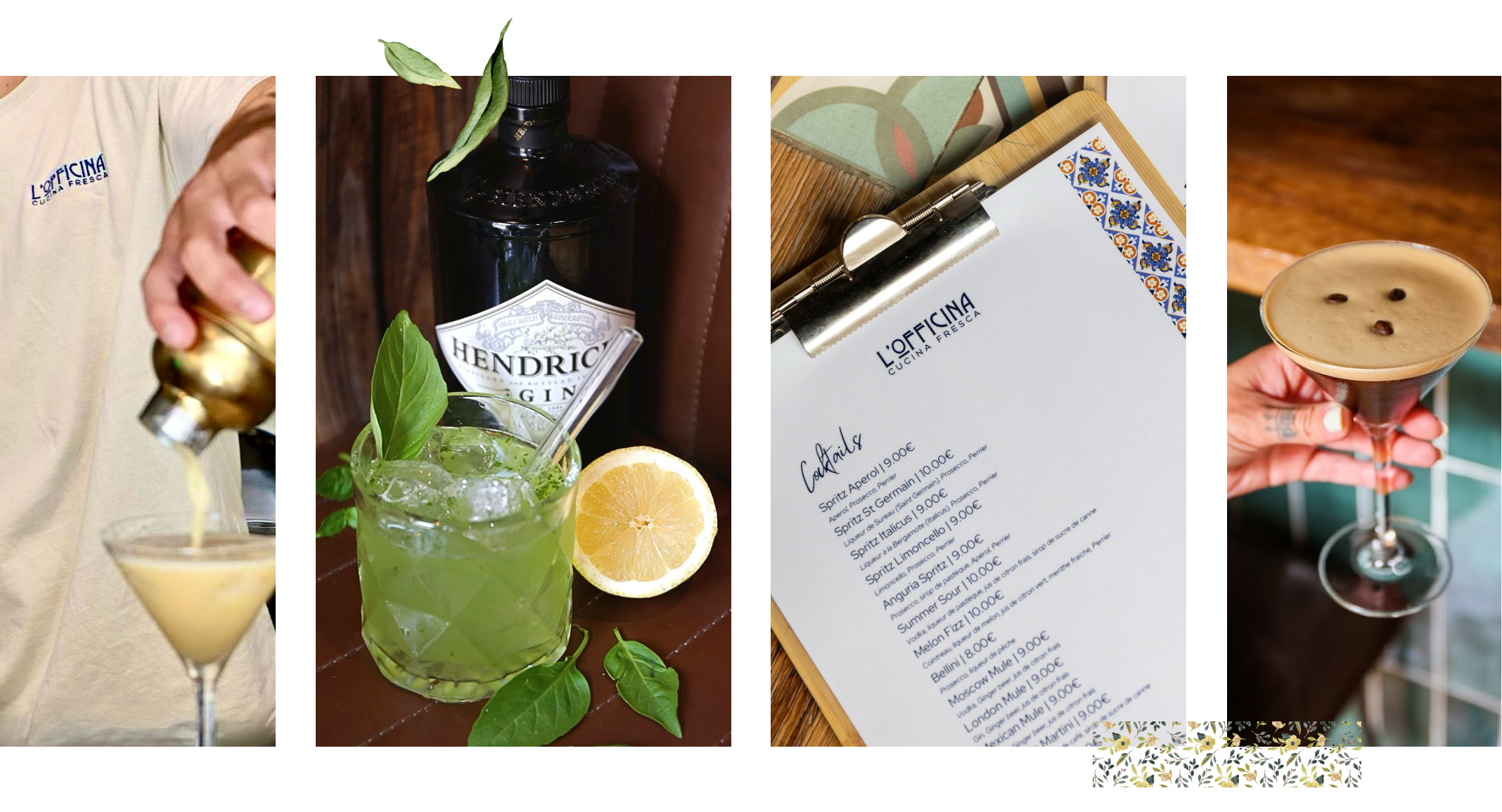À L’Officina, le voyage culinaire ne s’arrête pas dans l’assiette. Nous proposons une carte des vins qui alterne entre grands noms italiens et pépites locales, idéale pour sublimer nos plats. Les amateurs de bières trouveront aussi leur bonheur avec notre sélection italienne. Et pour une expérience originale, laissez-vous tenter par nos cocktails maison, pensés comme de véritables créations. Cette alliance unique contribue à faire de L’Officina une adresse de choix pour tous ceux qui recherchent le meilleur restaurant de Nîmes.